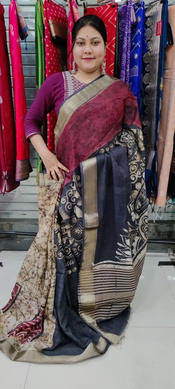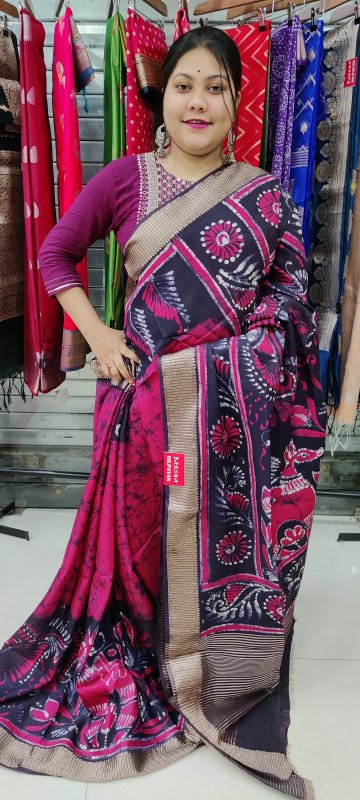 These Are Binni Silk Batik Saree With Bp